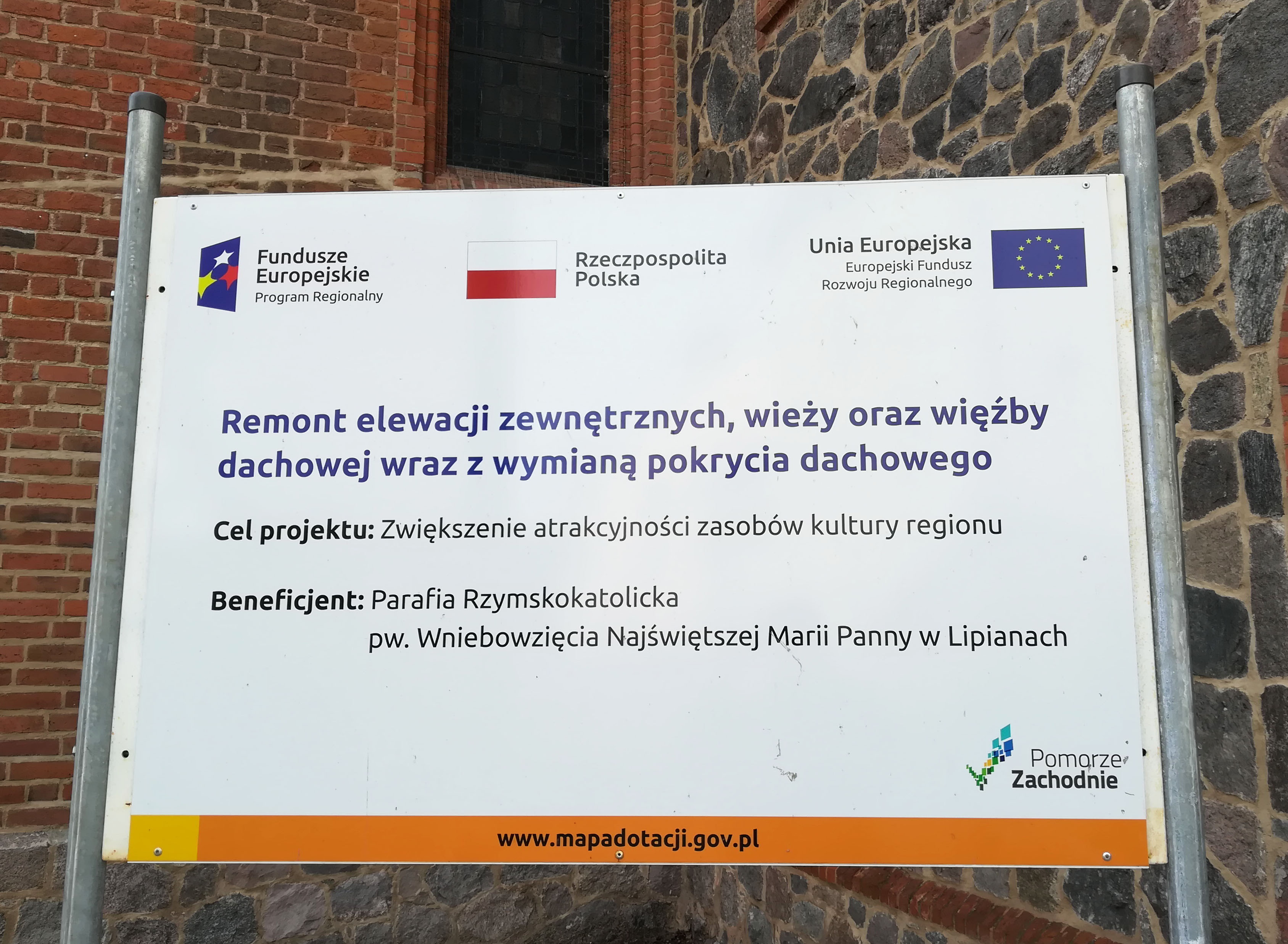 Przedmiotem projektu była renowacja zabytkowego kościoła w Lipianach, tj.: elewacji zewnętrznych, wieży, oraz więźby dachowej wraz z wymianą pokrycia dachowego.