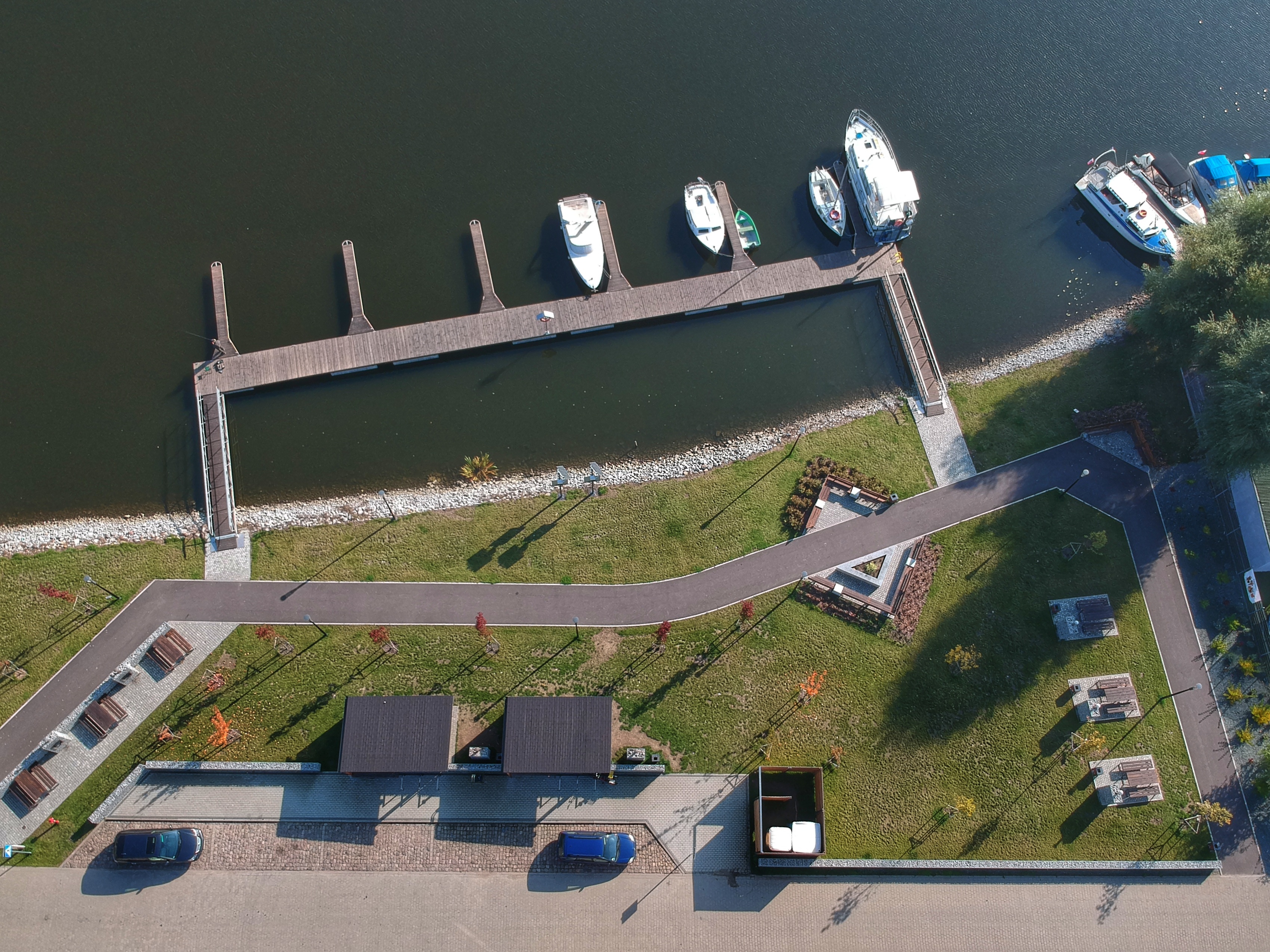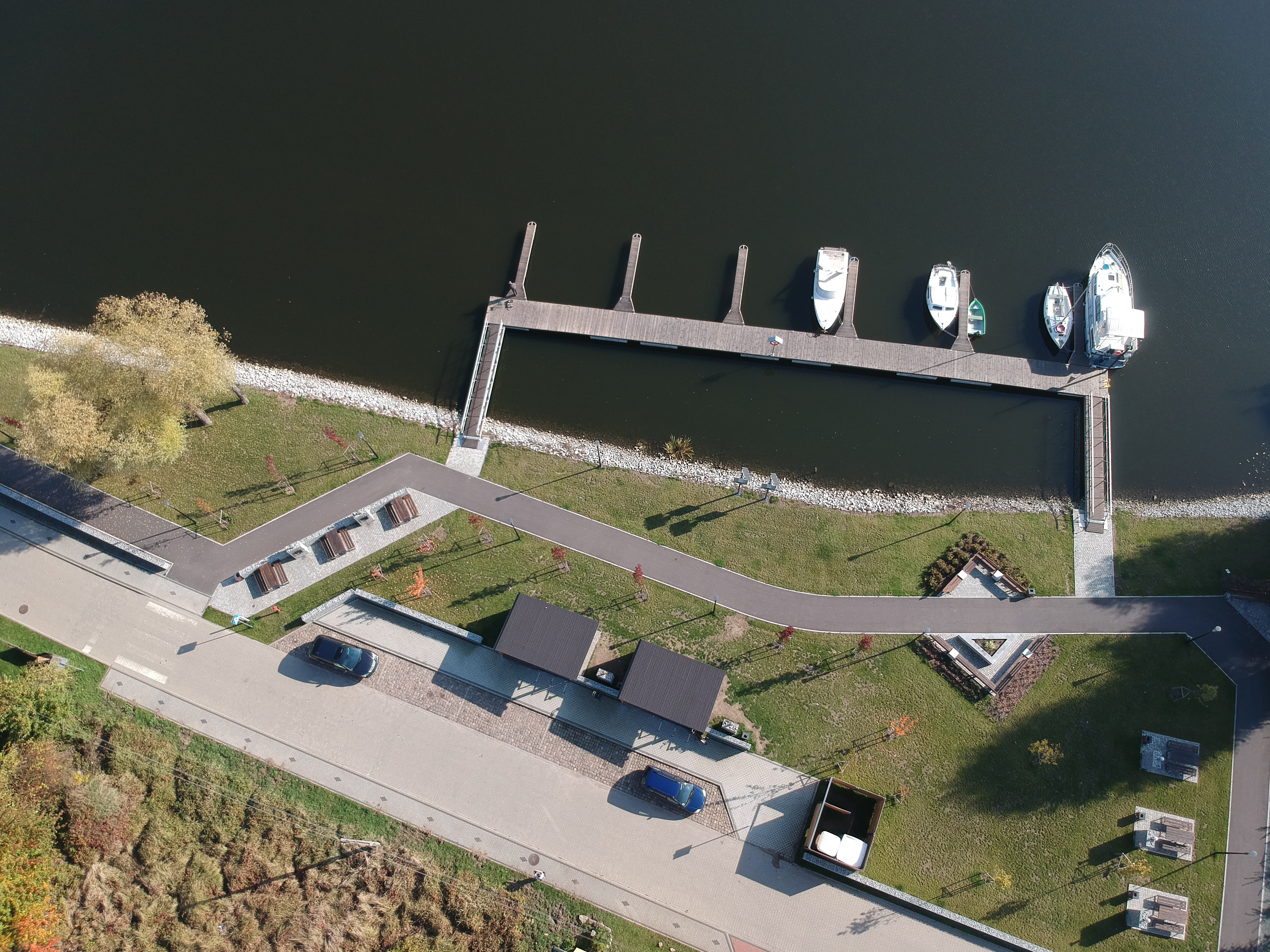• zamontowano 3 pomosty pływające wraz z trapami oraz elementami do cumowania,