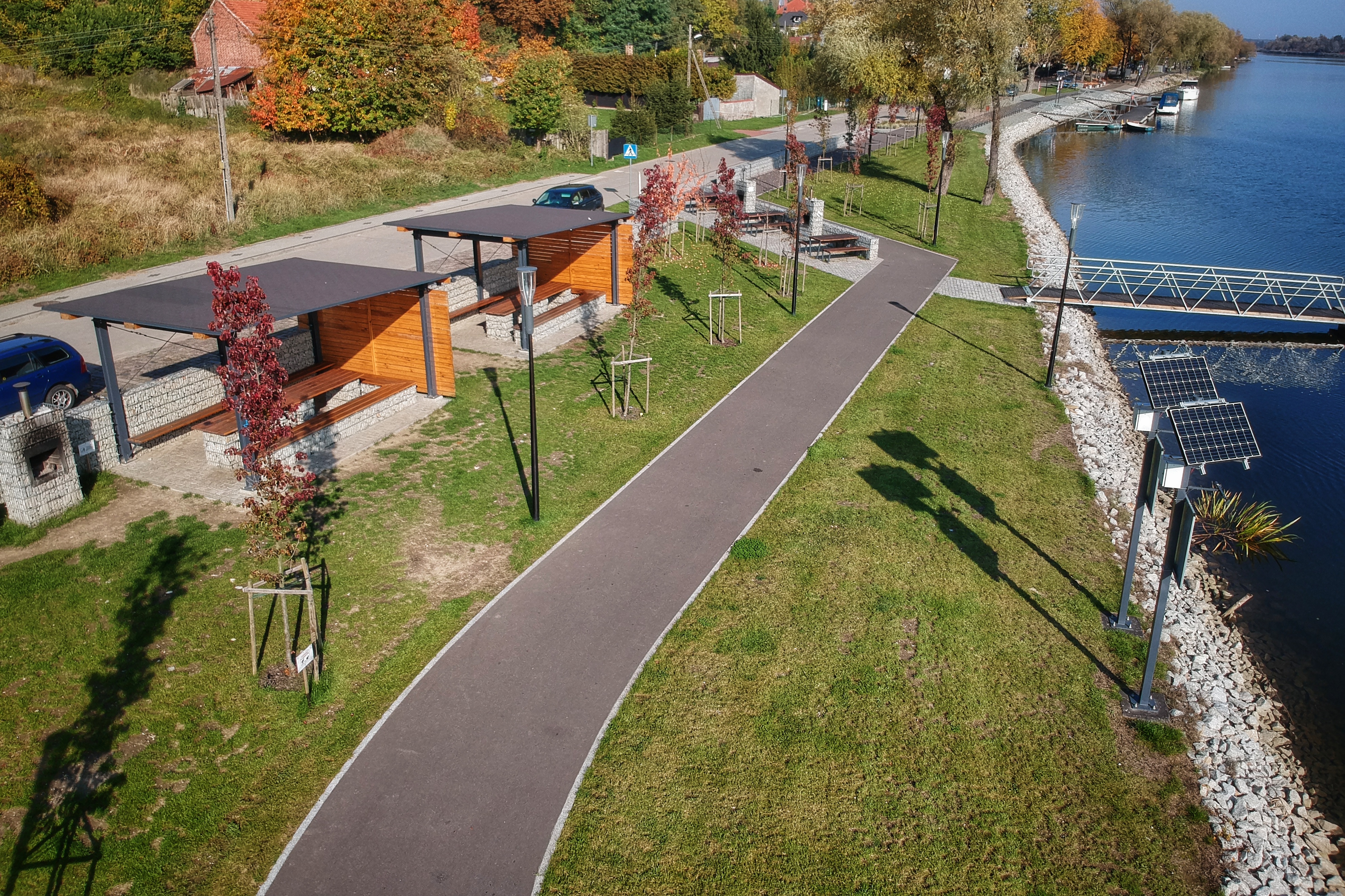 • the shoreline of the Odra River was strengthened with a stone coating,