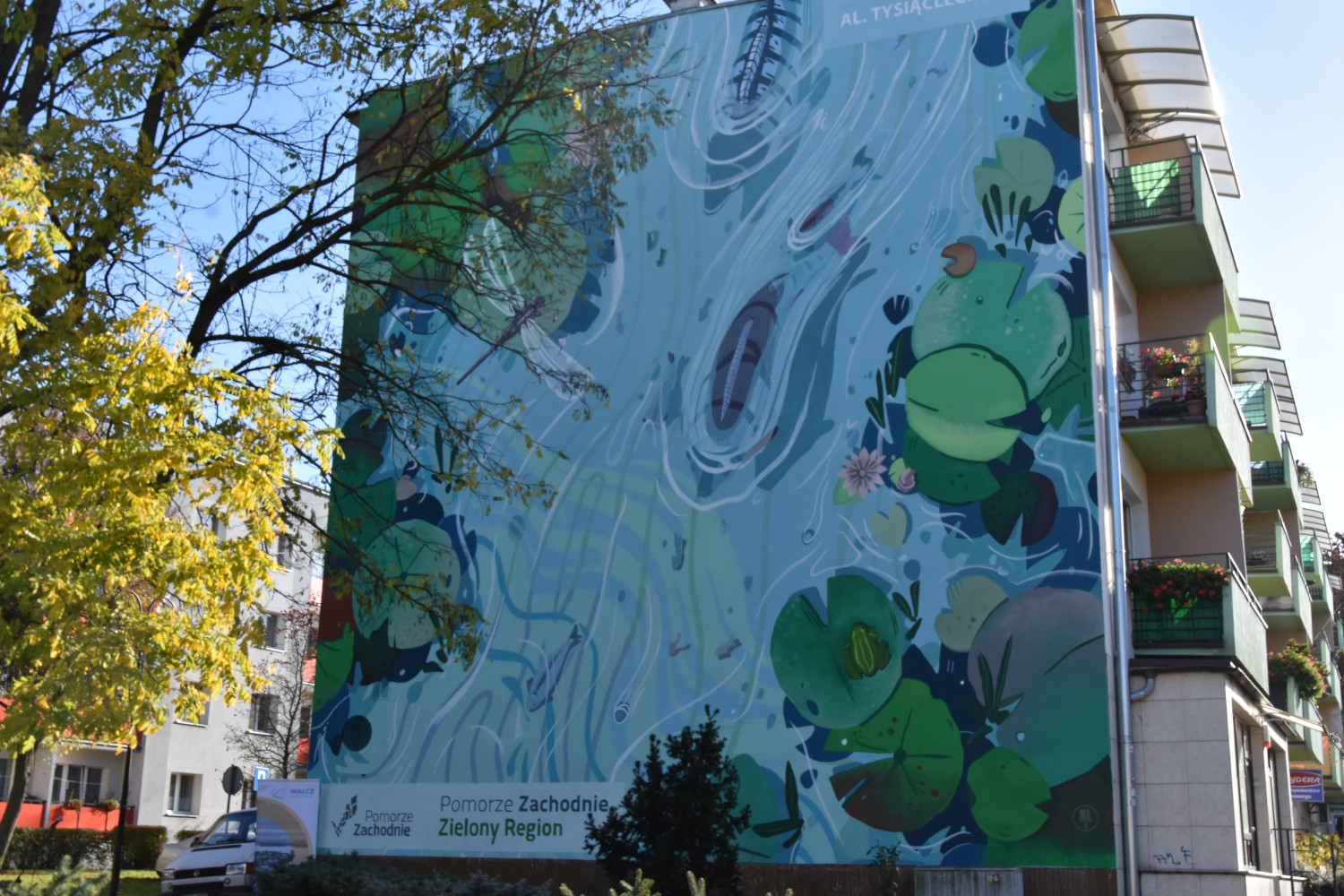 Ekomalowidła są efektywnym filtrem powietrza, a także wizytówką zielonego regionu, ozdobą miejskich przestrzeni. Kolejne dwa efektowne murale - z siedmiu realizowanych w tym roku - powstały w Połczynie-Zdroju (ul. Grunwaldzka 3) i Wałczu (ul. Tysiąclecia 2A). W oficjalnych prezentacjach uczestniczyli Anna Bańkowska i Stanisław Wziątek - Członkowie Zarządu Województwa Zachodniopomorskiego, przedstawiciele lokalnych samorządów i mieszkańcy. Na uroczystość przyjechał również Dominik Dziedzina, przedstawiciel kolektywu artystów z MurallStudio, którzy wykonali ogromne malowidła na elewacjach budynków.