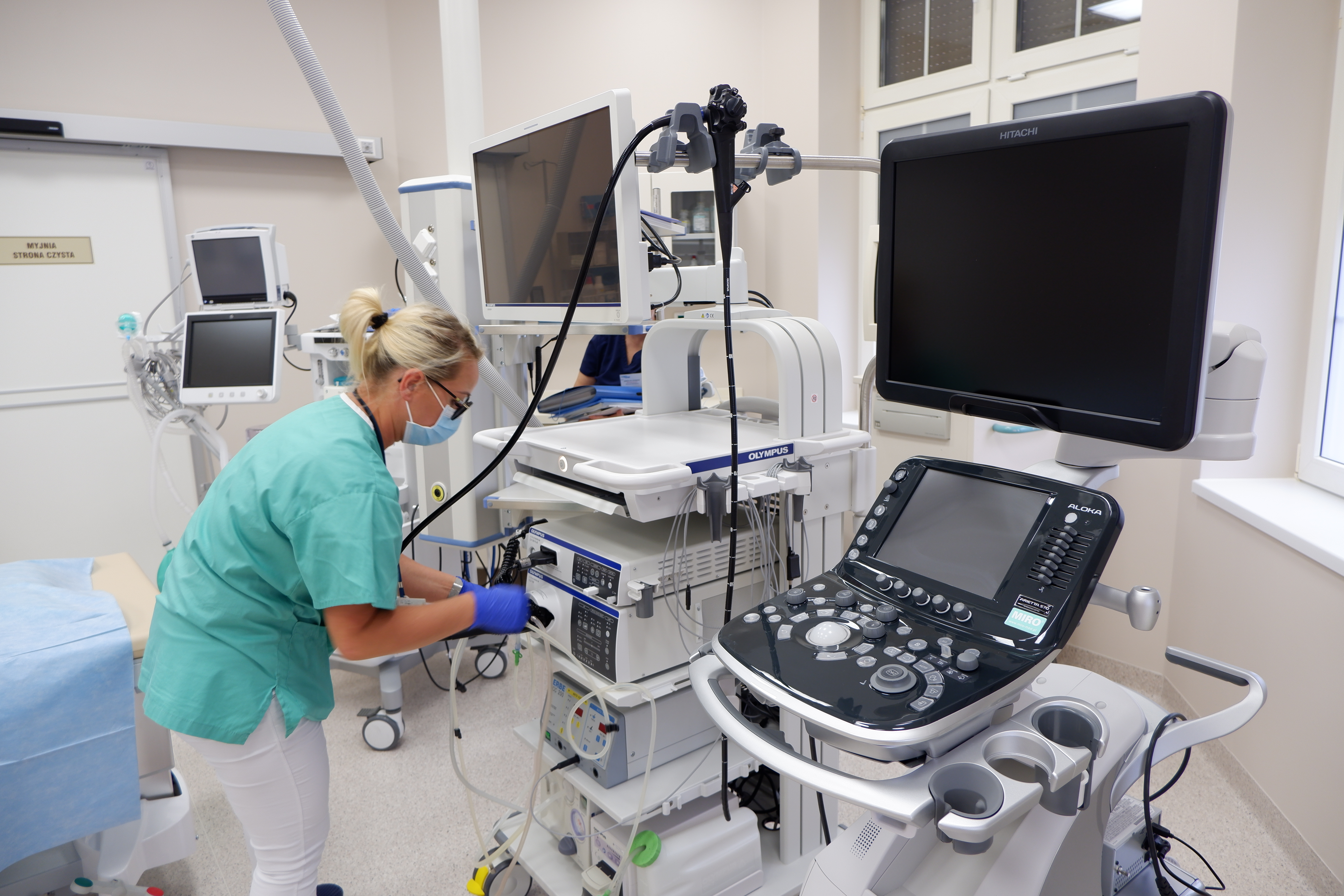 – Jest tu sala zabiegowa dostosowana do wykonywania procedur endoskopowych w znieczuleniu ogólnym oraz dwa gabinety, w których wykonywane są badania przewodu pokarmowego, to gabinet kolonoskopii i gabinet gastroskopii. Zyskaliśmy bardzo nowoczesny sprzęt endoskopowy, który pozwala na wykonywanie procedur medycznych w pełnym komforcie bezpieczeństwa dla pacjenta i personelu. Posiadamy również nowoczesny zestaw do ultrasonografii endoskopowej, który pozwala rozpoznawać zmiany nowotworowe w przewodzie pokarmowym na bardzo wczesnym etapie. Aby stworzyć pacjentowi maksimum komfortu, wydzieliliśmy pomieszczenie, w którym pacjent może przygotować się do kolonoskopii. Gabinet kolonoskopii wyposażyliśmy również w aparaturę umożliwiającą wykonywanie badania w znieczuleniu ogólnym. Wiemy, że jest to badanie, któremu nie każdy jest w stanie się poddać w znieczuleniu miejscowym, dajemy więc szansę naszym pacjentom na wykonanie tego badania – tłumaczyła Mirosława Kierkosz, lekarz gastrolog i koordynator Pracowni Endoskopowej.